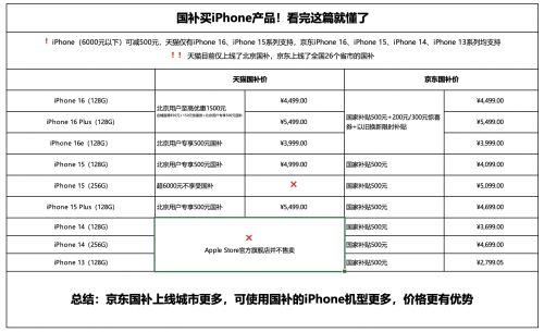 综上所述,京东在国补政策实施上不仅覆盖地区广泛,而且价格更具竞争力,为消费者提供了更多选择和更实惠的价格。因此,在购买iPhone时,消费者可优先考虑京东平台。
