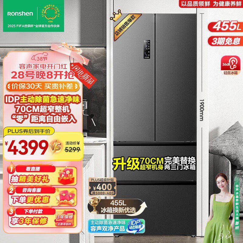 容声455L法式多门冰箱嵌入式一级能效变频京东活动价3489元