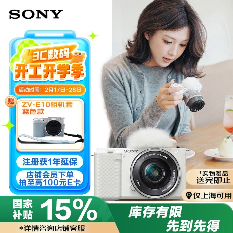 索尼ZV-E10微单相机白色单头套机4K视频Vlog创作神器