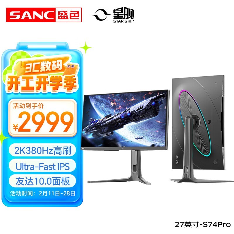 SANC星舰27英寸电竞显示器S74Pro京东特惠仅2500元