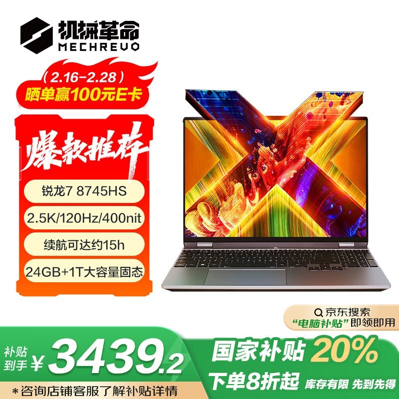 机械革命无界15X笔记本电脑R7-8745HS处理器24GB内存1TB存储