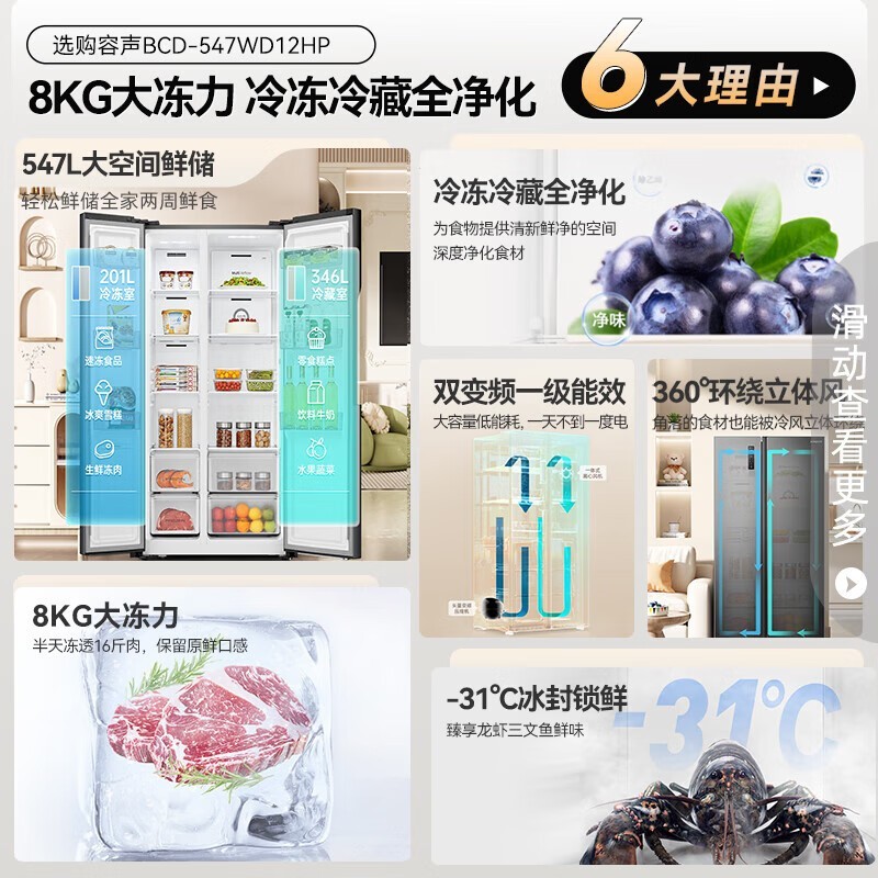 容声547L对开门冰箱BCD-547WD12HP促销到手仅1639元