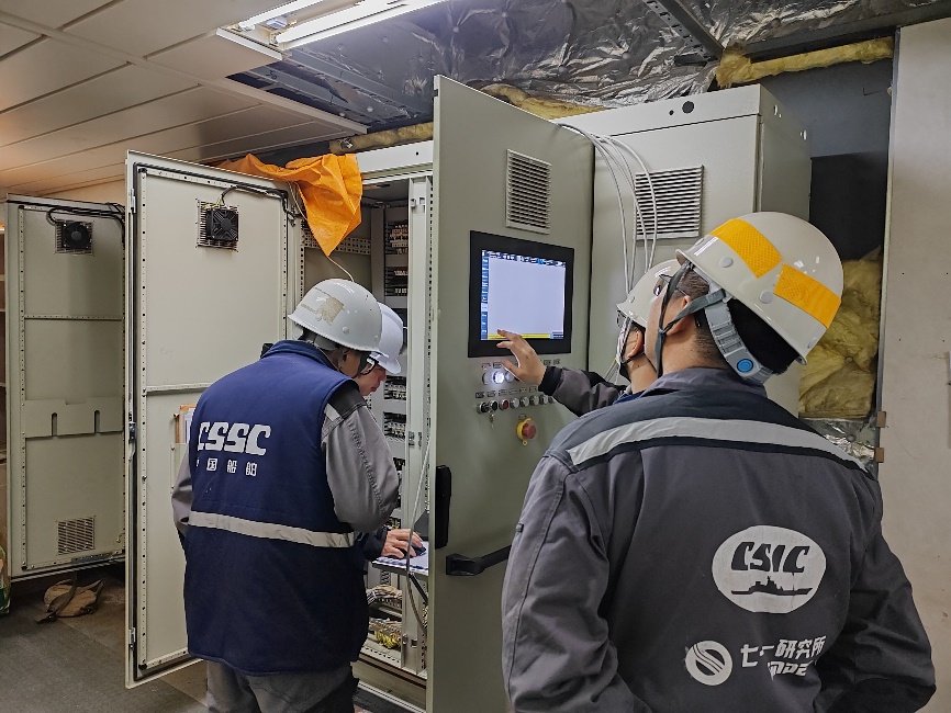 中船集团七一一所工程人员在检查设备。