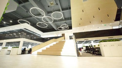 项目保留85%以上的高举架、高荷载等工业空间基因的前提下,适配智能制造企业的研发需求。改造后的园区,既延续了工业遗存的“硬核骨架”,又能满足现代产业需求。例如,原家具厂的高荷载车间被改造为生物医药企业的精密仪器实验室,高挑空厂房则成为人工智能企业的技术验证平台,为智能机器人研发、多场景算法调试提供物理空间支持。