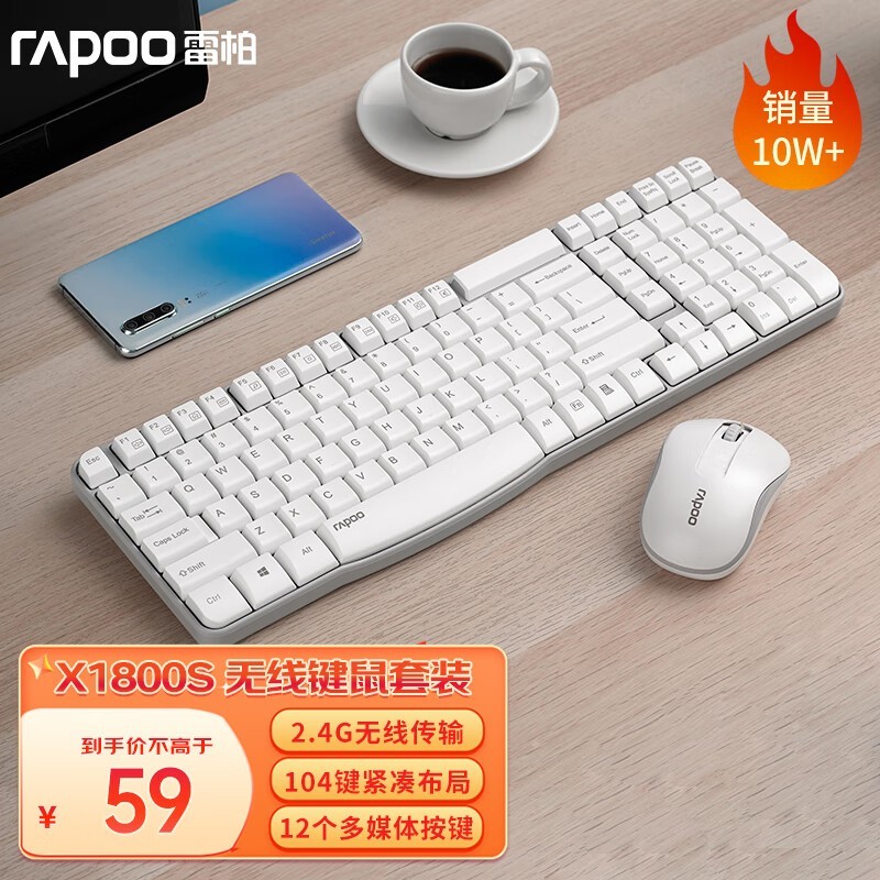 雷柏X1800S无线键鼠套装白色简约设计办公必备