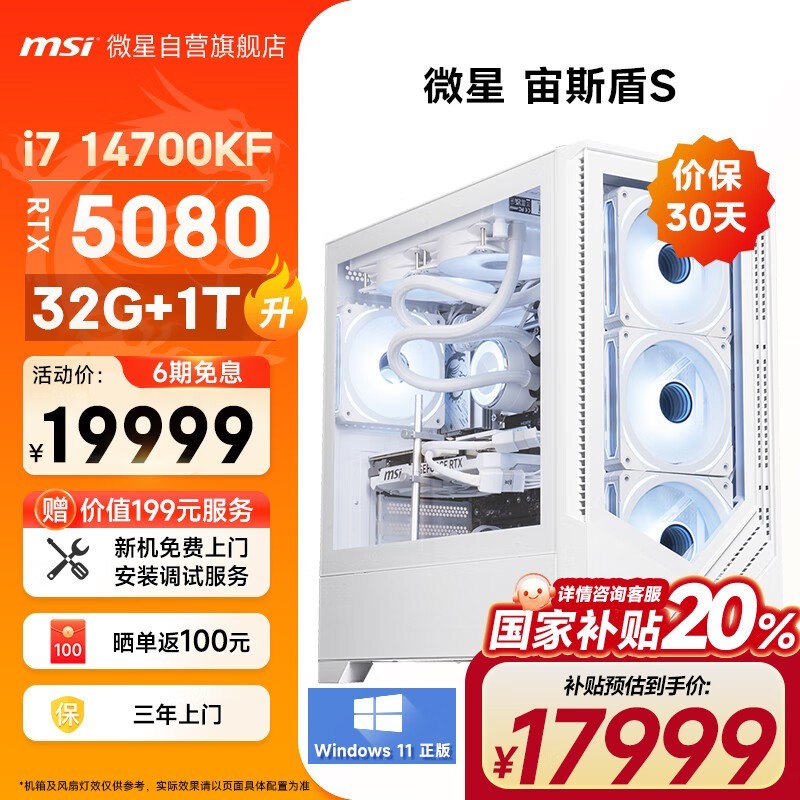 微星宙斯盾S台式主机 i7-14700KF 32GB内存 1TB存储 RTX5080 显卡