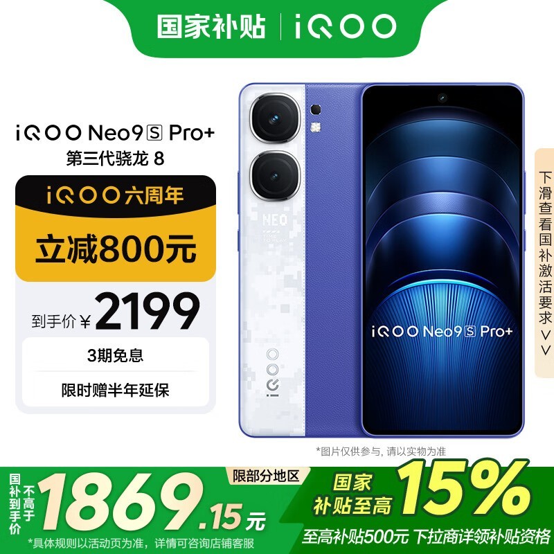 iQOO Neo9S Pro+ 5G手机京东特惠低至1835元