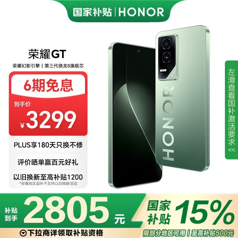 荣耀HONOR GT 5G手机16GB+1TB极光绿限时优惠仅2754元