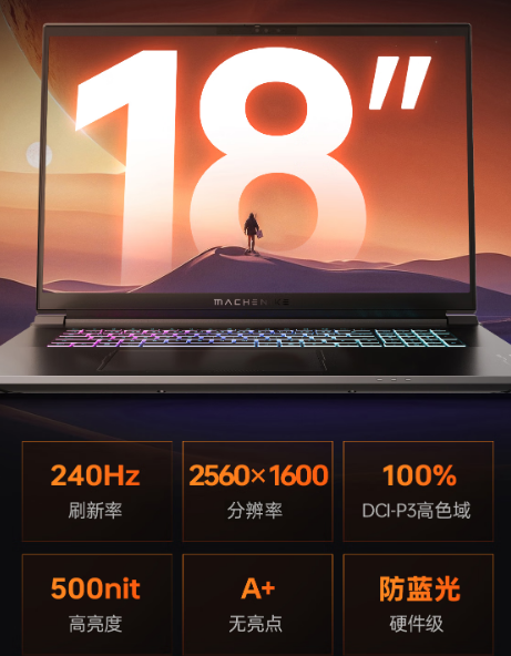 曙光18Pro屏幕分辨率为2560x1600,刷新率高达240Hz,响应速度为3ms,100%DCI-P3色域覆盖,最大亮度为500nit。无论是在创作设计中对色彩的精准要求,还是在游戏场景中对快速反应的需要,这块超高分辨率显示屏都能够提供出色的视觉体验。此外,低蓝光护眼技术进一步提升了长时间使用时的舒适性,减少眼睛疲劳。