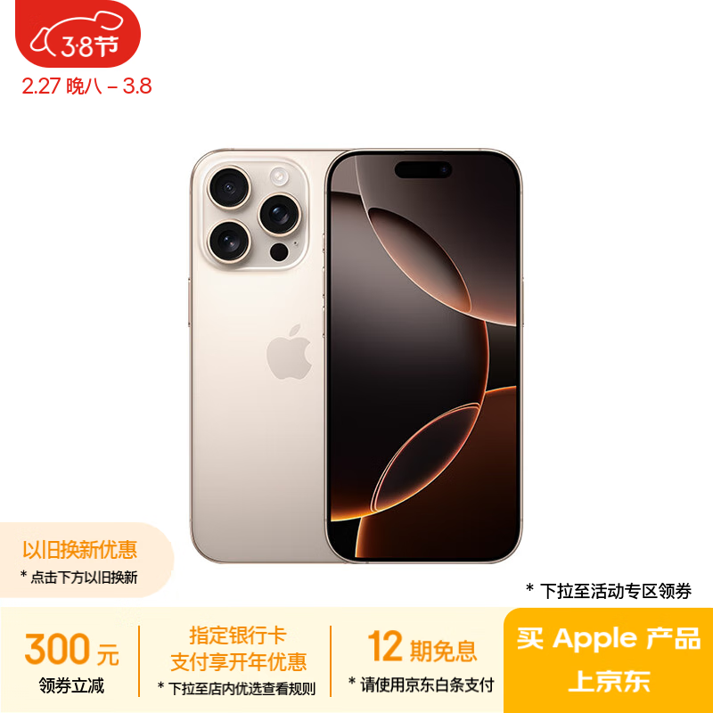 京东特惠:全新iPhone 16 Pro沙漠钛金版到手仅6462元