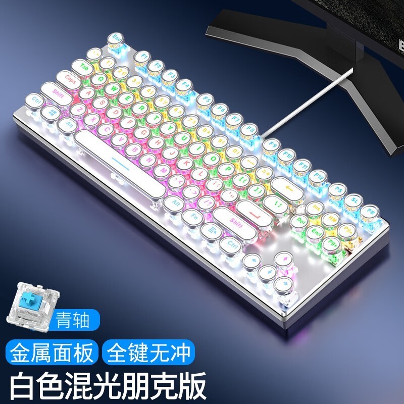 硕臣朋克机械键盘87键青轴电竞游戏办公双色注塑键帽RGB灯效