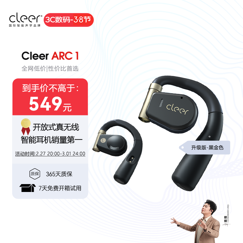 可丽尔Cleer ARC真无线降噪蓝牙耳机黑色款促销