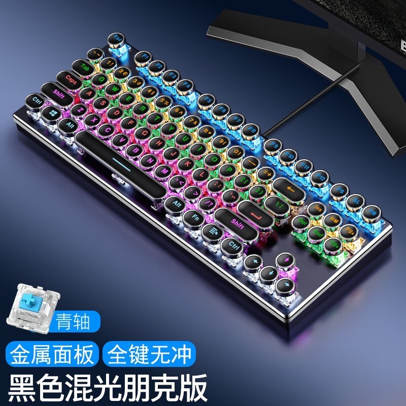 硕臣朋克机械键盘黑色87键青轴RGB背光电竞游戏办公键盘