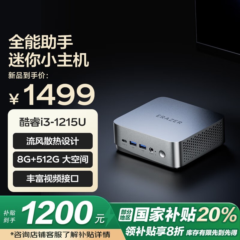 联想Lenovo异能者迷你主机12代i3-1215U京东活动价1200元