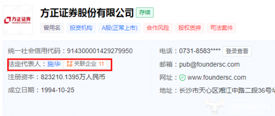 之后在2015年10月,施华成为方正集团执行委员会委员、副总裁,后还曾担任集团的首席运营官。据天眼查显示,施华目前关联的企业多达11家。其中,施华现任新方正控股发展有限责任公司的党委副书记、北大方正人寿的董事长、方正证券的董事长。新方正控股是方正证券的大股东,拥有公司28.71%的股份。