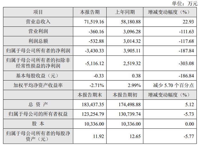 报告期末,公司总资产 183,437.35 万元,同比增长 5.12%;归属于母公司的所有者权益 123,254.79 万元,同比下降 5.73%。