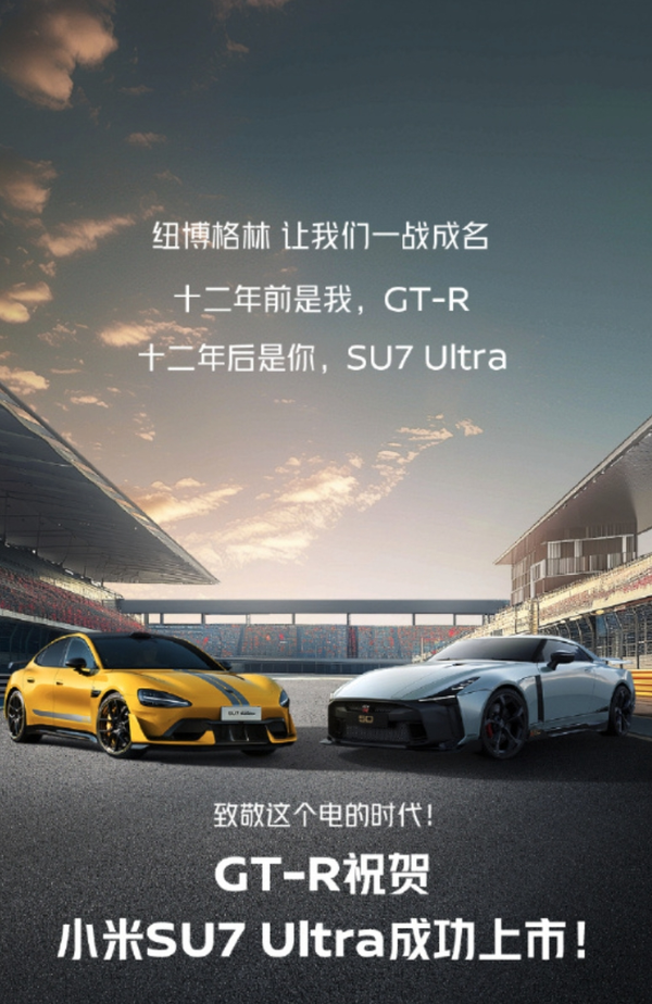 东风日产GT-R祝贺小米SU7 Ultra成功上市 致敬电的时代