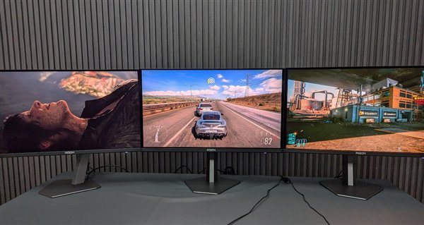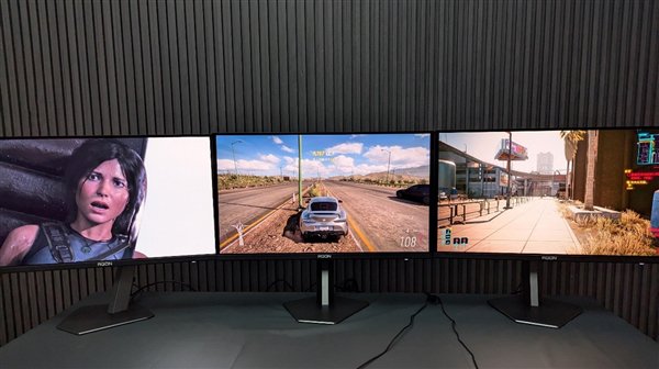 为了考验这款显卡的极限性能,我们准备了3台AGON AG276QSD OLED电竞显示器,将这3块2K@360Hz屏幕都连接到RTX 5090 D上,挑战3款3A大作同时运行的性能发挥。