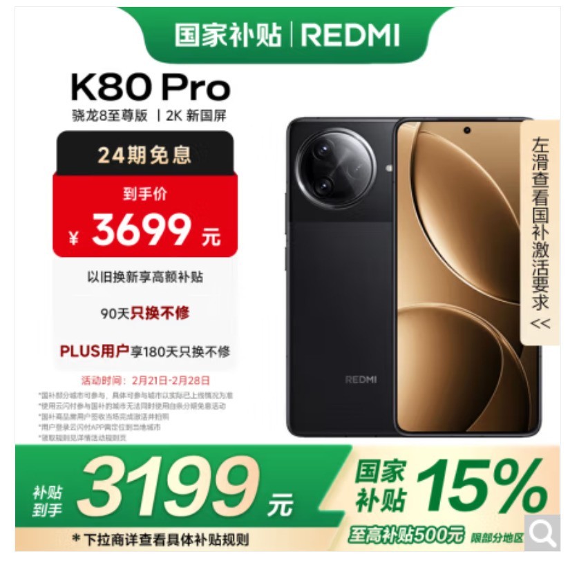 红米K80 Pro:3699元起(国补后3199元),性价比之选,适合游戏玩家与大屏爱好者。