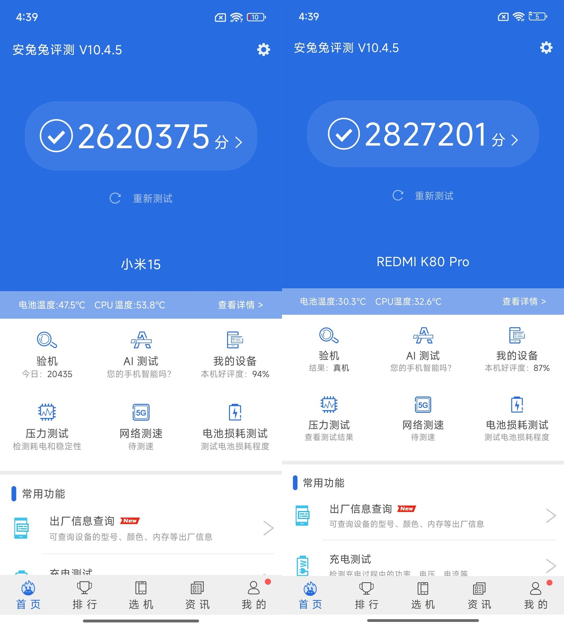 综上所述,小米15胜在工艺细节与轻薄手感,红米K80 Pro则以大屏满足影音需求。