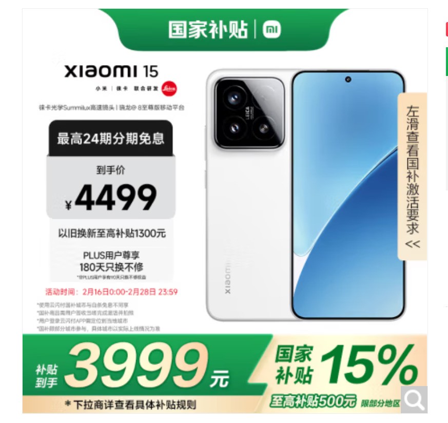 小米15:4499元起(国补后3999元),适合追求小屏旗舰、影像品质与高端工艺的用户。