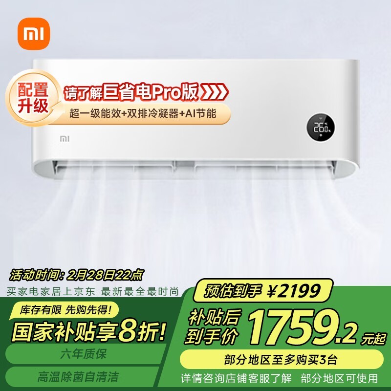 小米Xiaomi巨省电系列壁挂式空调新一级能效1匹仅1748元