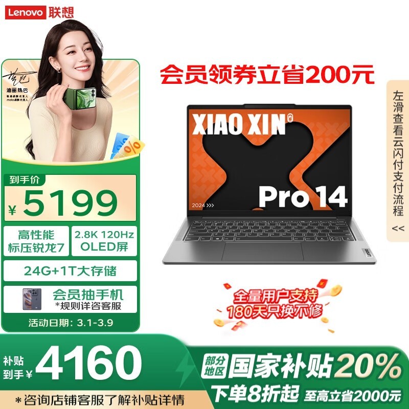 联想小新Pro14 2024款八代锐龙版促销价3978元