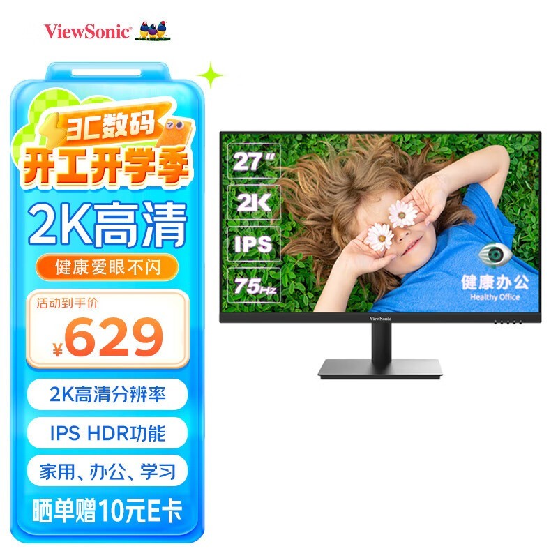 优派VA2762-2K-HD显示器27英寸2KIPS京东619元