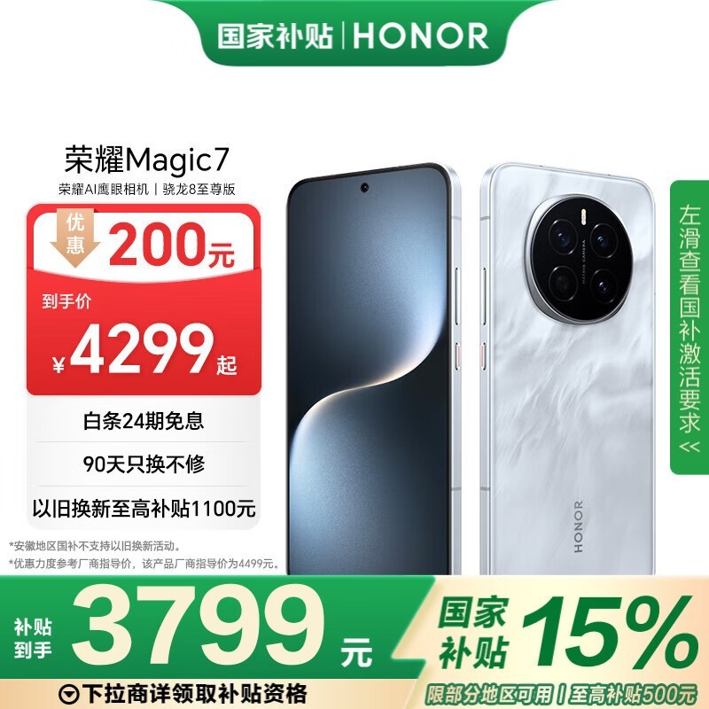 荣耀Magic7 5G手机月影灰 12GB+256GB 促销到手3759元