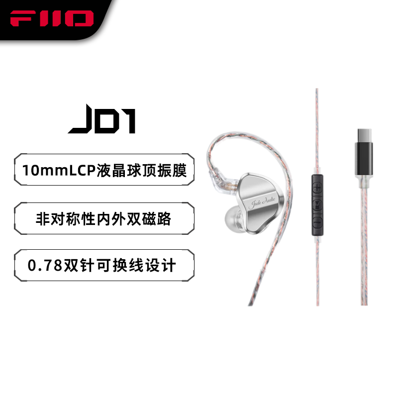 FiiO JD1入耳式耳机 银色Type-C接口 游戏学习两不误促销到手79元
