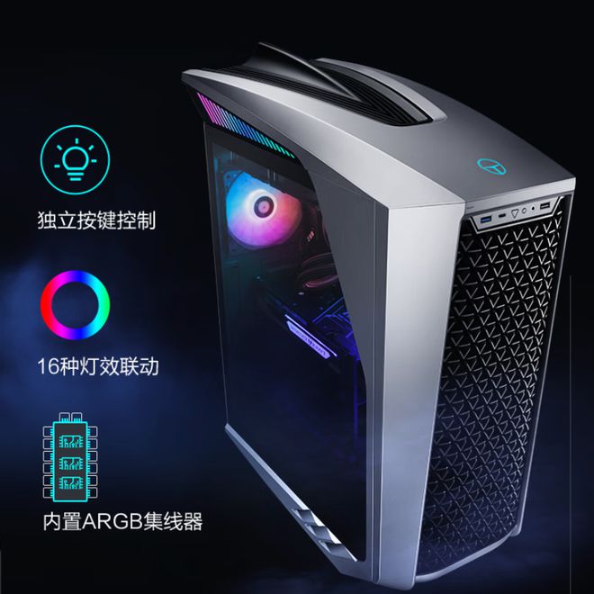 雷神黑武士・Shark 旗舰电竞主机支持一键 ARGB 神光同步,一键控制,灯效联动。16 种灯效效果:呼吸,单色,流光,5 种颜色构成属于 SHARK 独特光效基因。