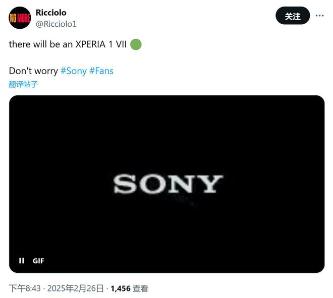 3 月 1 日消息,消息源 @Ricciolo1 于 2 月 26 日在 X 平台发布推文,曝料称“Xperia 1 VII 即将到来”,表明索尼会继续其智能手机产品线,至少在今年内不会中断。