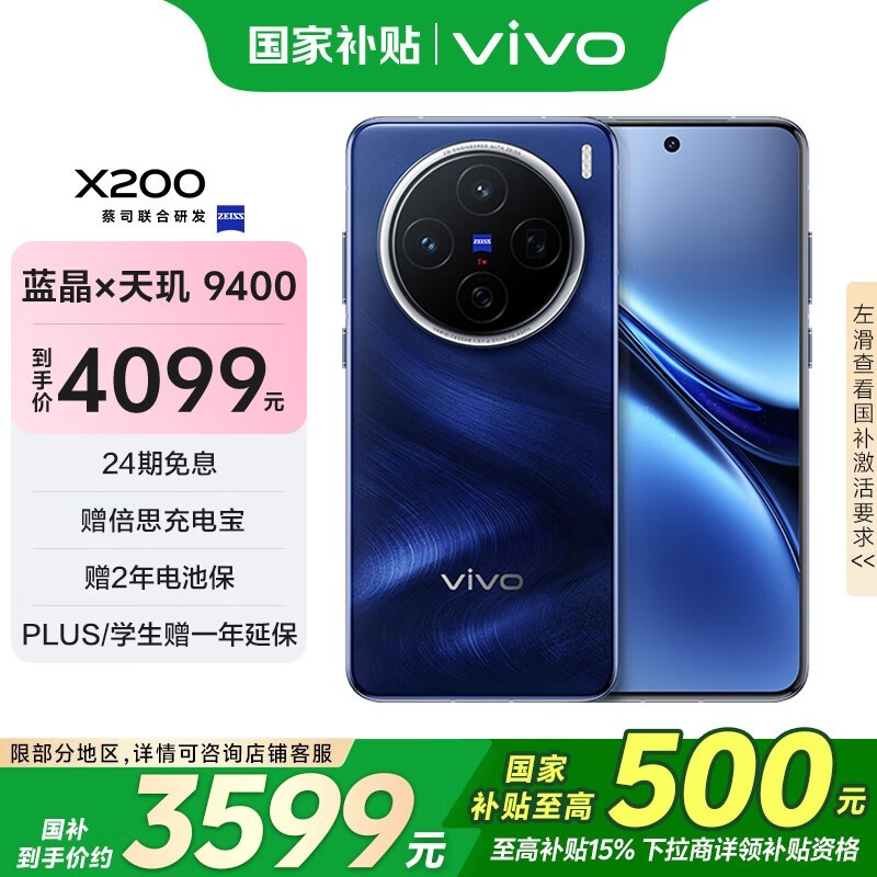 vivo X200 5G手机宝石蓝12GB+256GB京东优惠低至3437元