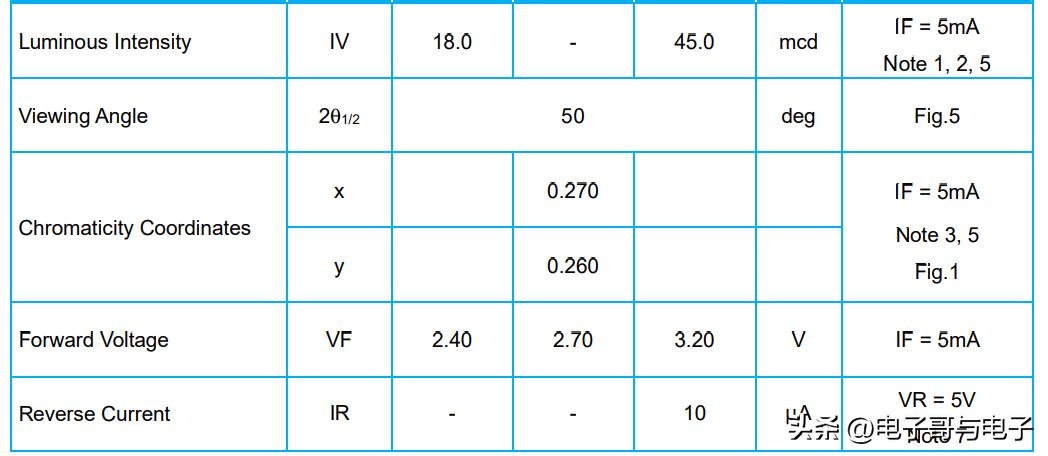 这些参数可以从发光二极管数据手册查到。