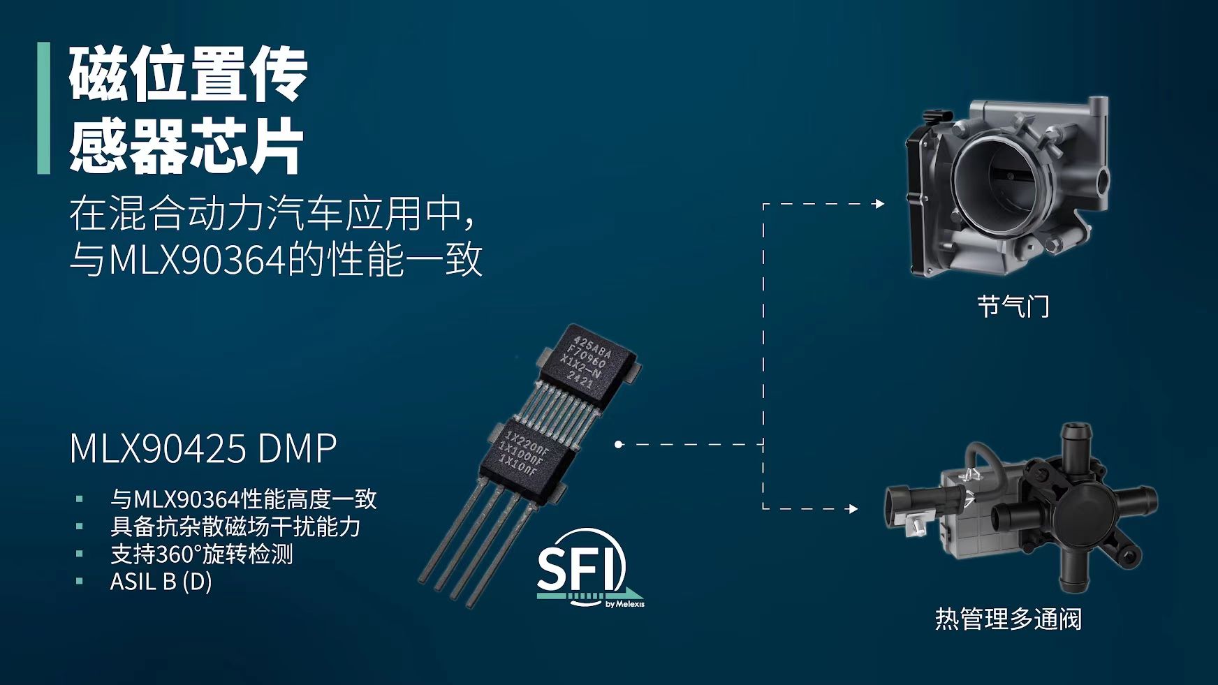 迈来芯DMP封装版MLX90364和MLX90421已在内燃机(ICE)汽车领域取得巨大成功,广泛应用于油门位置、废气再循环(EGR)系统、变速箱位置以及其他执行器或运动反馈系统中,为车辆提供精确的位置反馈信息。随着汽车制造商从传统ICE驱动汽车向更加可持续的高压混合动力系统转型,对电子元件的抗杂散磁场干扰(SFI)性能提出来更高的要求,以确保磁感应芯片提供准确的感应反馈信息。