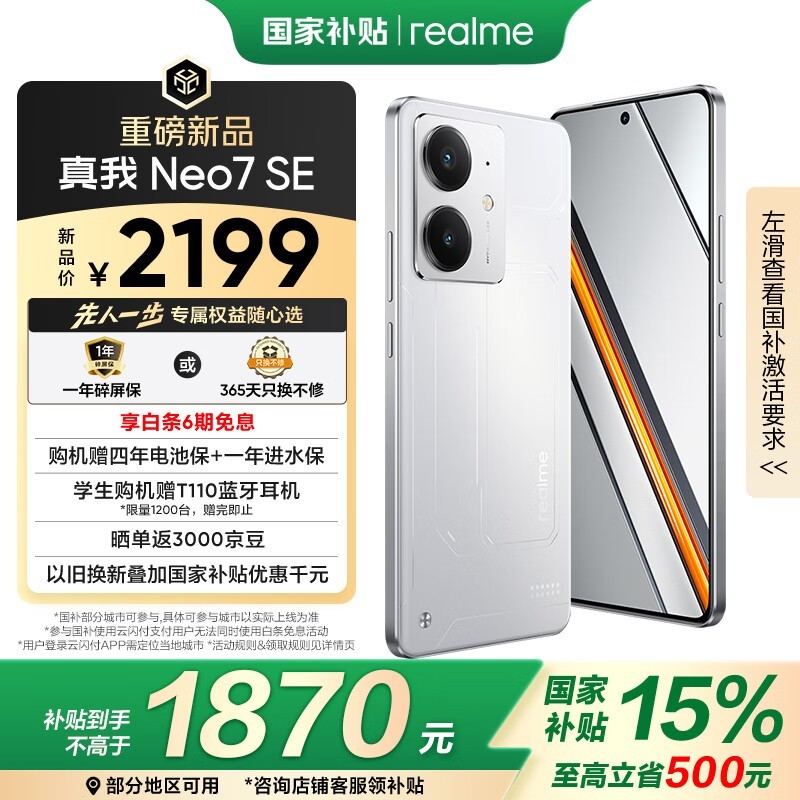 realme Neo7 SE白翼战神版手机12GB+512GB大存储防尘防水仅1839元