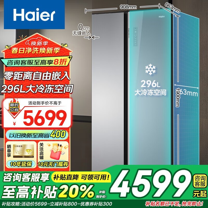 海尔大容量零嵌入式冰箱:丝缎灰设计,550L净味冷冻,智能健康储藏,仅售¥5699!