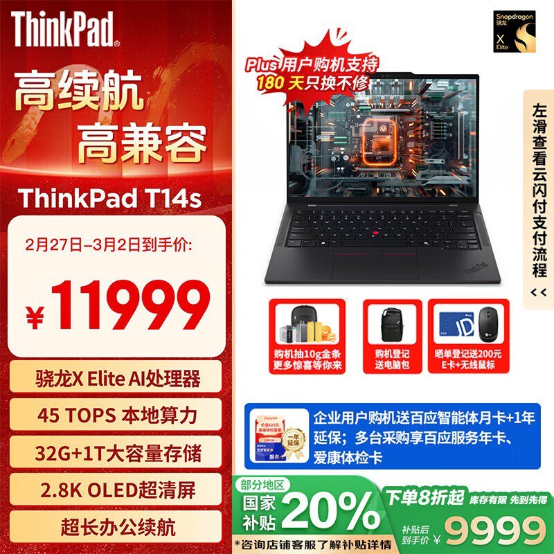 ThinkPad T14s轻薄商务笔记本限时特惠至11499元