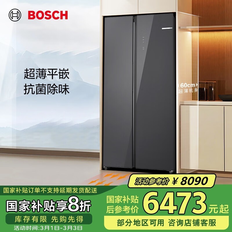 博世超薄60cm大容量变频电冰箱:512L空间,静音节能,提升现代家庭生活品质