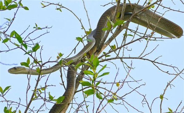 黑曼巴蛇是眼镜蛇科黑曼巴属物种,爬行速度很快,可达 16~20 公里/小时
