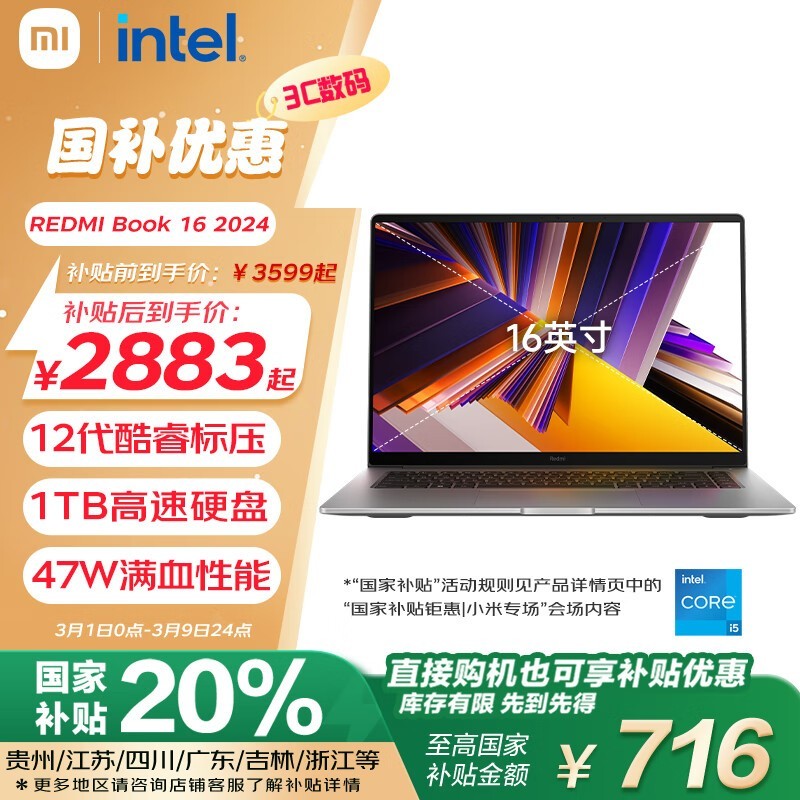 Redmi Book 16 2024款轻薄高性能笔记本电脑