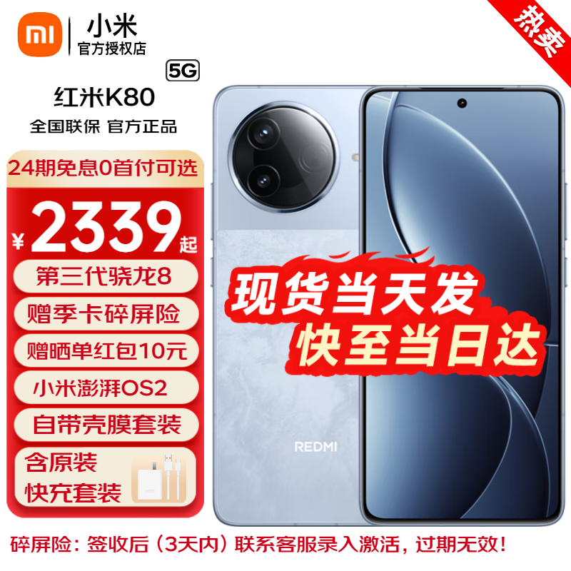 红米K80 5G手机12GB+256GB汐月蓝促销仅2339元