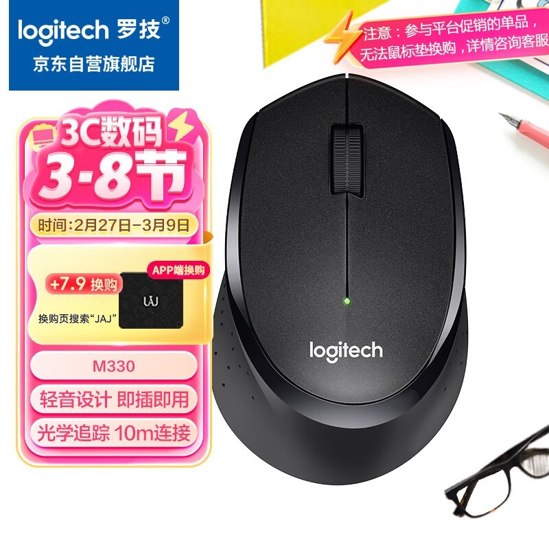 静音舒适罗技Logitech M330无线鼠标京东好价仅88.61
