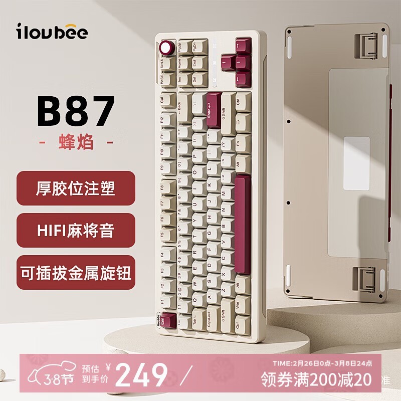 艾卢比ilovbee B87三模机械键盘京东特惠242元