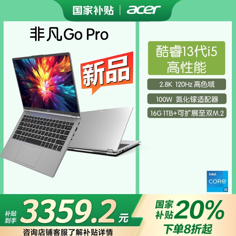 宏碁非凡Go Pro十三代酷睿版笔记本电脑京东特惠3359元