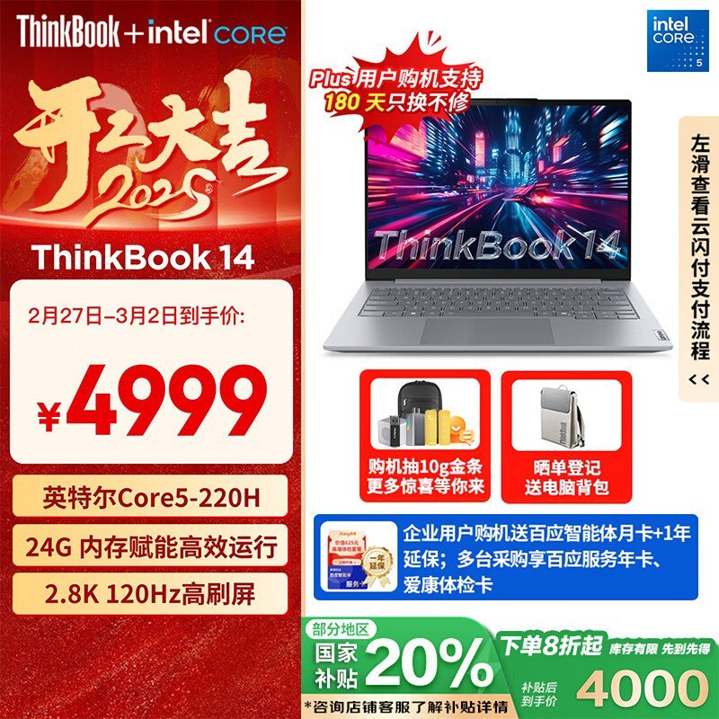 ThinkPad ThinkBook 14 2025 酷睿版笔记本电脑京东特惠仅3999元