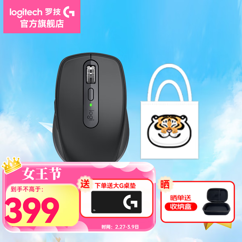 罗技Logitech MX Anywhere3S无线蓝牙办公鼠标石墨黑礼袋款