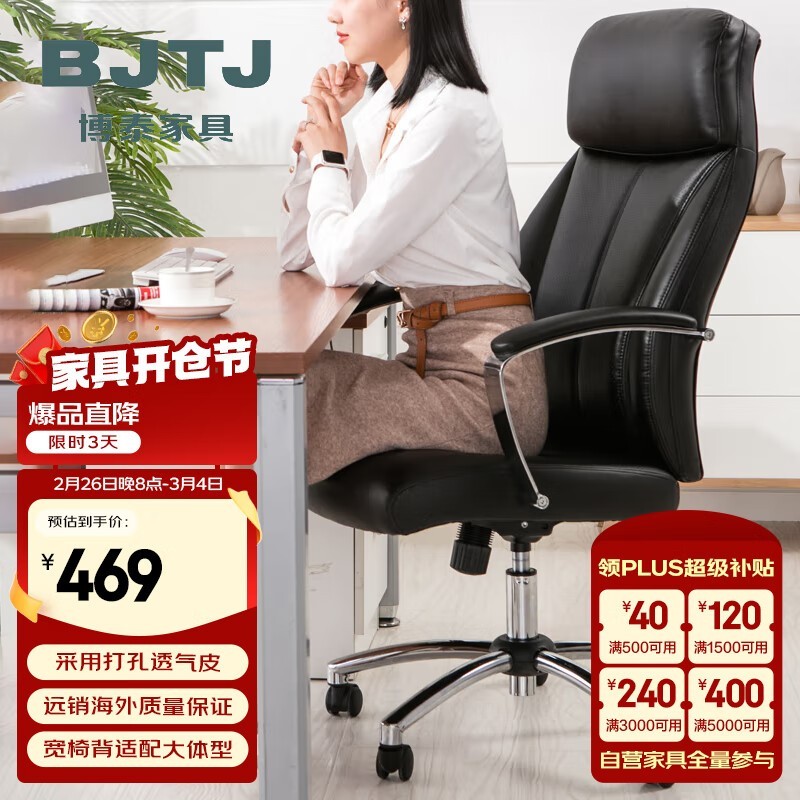 时尚黑色博泰BJTJ电脑椅子人体工学设计舒适稳固