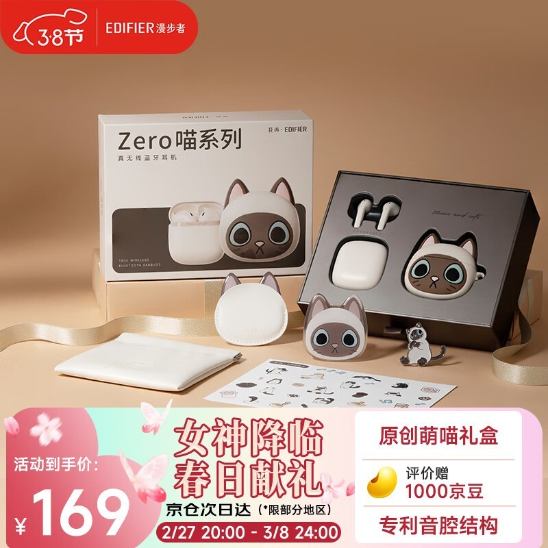 漫步者Zero喵系列限定礼盒蓝牙耳机京东特惠160元