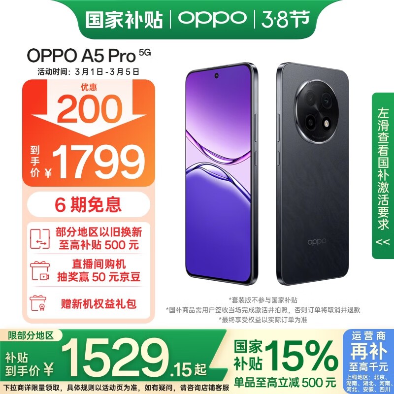 OPPO A5 Pro 5G手机京东好价仅1529元